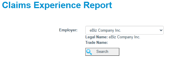 Click Search. The system will produce your Claims Experience Report.