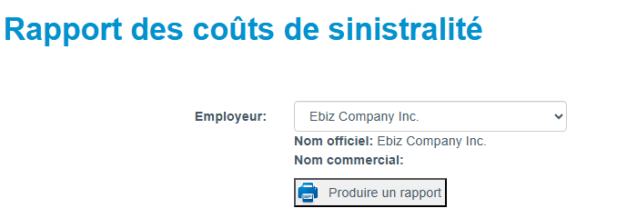 Cliquez sur Produire un rapport. Le système produira votre rapport des coûts de sinistralité.